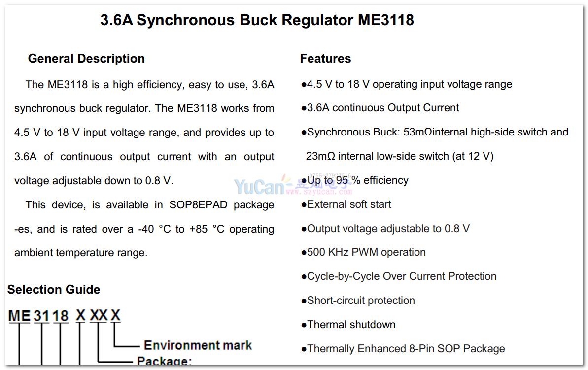 ME3118系列 4-18V工作電壓的 輸出3.6A同步降壓